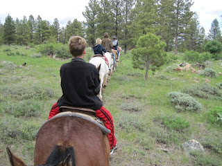 The next morning the boys and I went horse back riding with Cowboy Wayne. What a blast. We rode on the trail and stopped to look down at the Flaming Gorge. Bens horse was named Shakers, Jacksons horse was named Shorty and I had Foxy. The boys loved their horses and of course now want one. Cowboy Wayne was a lot of fun and nick named Ben "Cotton" since his hair is so white. Ben loved this and for the rest of the trip we had to refer to him as "Cotton" or he just wouldn't respond!